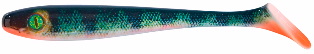 Der Balzer Shirasu MK Pike Collector Shad ist die neue druckvolle Alternative zu einem der folgreichsten Hechtköder aller Zeiten, dem Pike Collector. Das geniale an diesem Köder ist, das der Angler nichts zu tun hat, außer zu kurbeln. Die Hechte werden allein vom Bewegungsmuster und den Druckwellen des massigen Gummikörpers zum Angriff verleitet. Warum also nicht einen Gummifisch im gleichen Format entwickeln? Was nicht heißt, dass man damit nicht auch Zander erbeuten könnte (z.B. beim pelagischen Fischen). Der Köder flankt stark, und muss, genau wie der Pike Collector mit den breiten Twisterschwänzen, nur eingeleiert werden. Neu sind die Reptilienaugen, die von Bedeutung sind, weil Hechte oft die Augen fixie ren. Die UV aktiven Augen sind versiegelt und halten so bombenfest. So hat man lange Freude an seiner Hechtwaffe. Alle Modelle sind uv-aktiv.