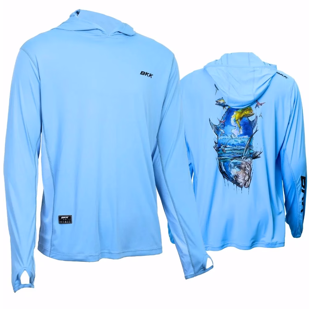 BKK Long Sleeve Performance Shirt Brand Value GT. BKK è sinonimo di innovazione e avventura. Specializzata nello sviluppo di ami da pesca, BKK offre anche un'intera gamma di abbigliamento e accessori che non sono solo funzionali e confortevoli, ma anche progettati con gusto per completare lo stile di vita degli appassionati di pesca.