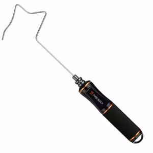 Daiwa Presso Hakenlöser. Der Daiwa Presso Hook Releaser ist ein Hakenlöser für area trout der vom Daiwa Japan. Forellenwettkampfteam konzipiert und entwickelt wurde. Der ergonomisch geformte EVA-Griff mit einer Daumenauflage im Aluminiumbereich sorgt für einen sicheren und festen Griff. Die Länge der Rute ist über einen mitgelieferten Inbusschlüssel von 27,5 bis 38 cm einstellbar. Die Rute hat zwei Auslösepunkte, einen an der Spitze und einen an der Seite für maximale Benutzerfreundlichkeit unter allen Angelbedingungen. An der Rückseite des Griffs befindet sich eine Öse zur Befestigung an einem Karabiner am Gürtel oder an anderen leicht zugänglichen Stellen.