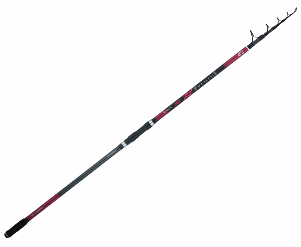 Die neue Daiwa NINJA TELE SURF Surfcasting-Rute ist eine preiswerte Surfcasting-Rute, die sich an diejenigen richtet, die zum ersten Mal mit dieser spannenden Technik beginnen wollen oder an diejenigen, die mit einem wirklich geringen Aufwand fischen wollen. Die Daiwa Ninja Tele Surf ist eine teleskopische Surfcasting-Rute, was sie sehr kompakt und leicht transportierbar macht. Der Blank ist aus harzarmem Carbonium HVF mit Braiding X Behandlung zur Verstärkung des Schafts gefertigt. Die Rute verfügt außerdem über einen Griff mit EVA Grip, der den Anglern das Werfen erleichtert, indem er den Griff am Schaft verbessert. Das Design wurde überarbeitet, der Look ist modern und auffällig, und sie haben ein mattes Finish, das sie noch attraktiver macht.