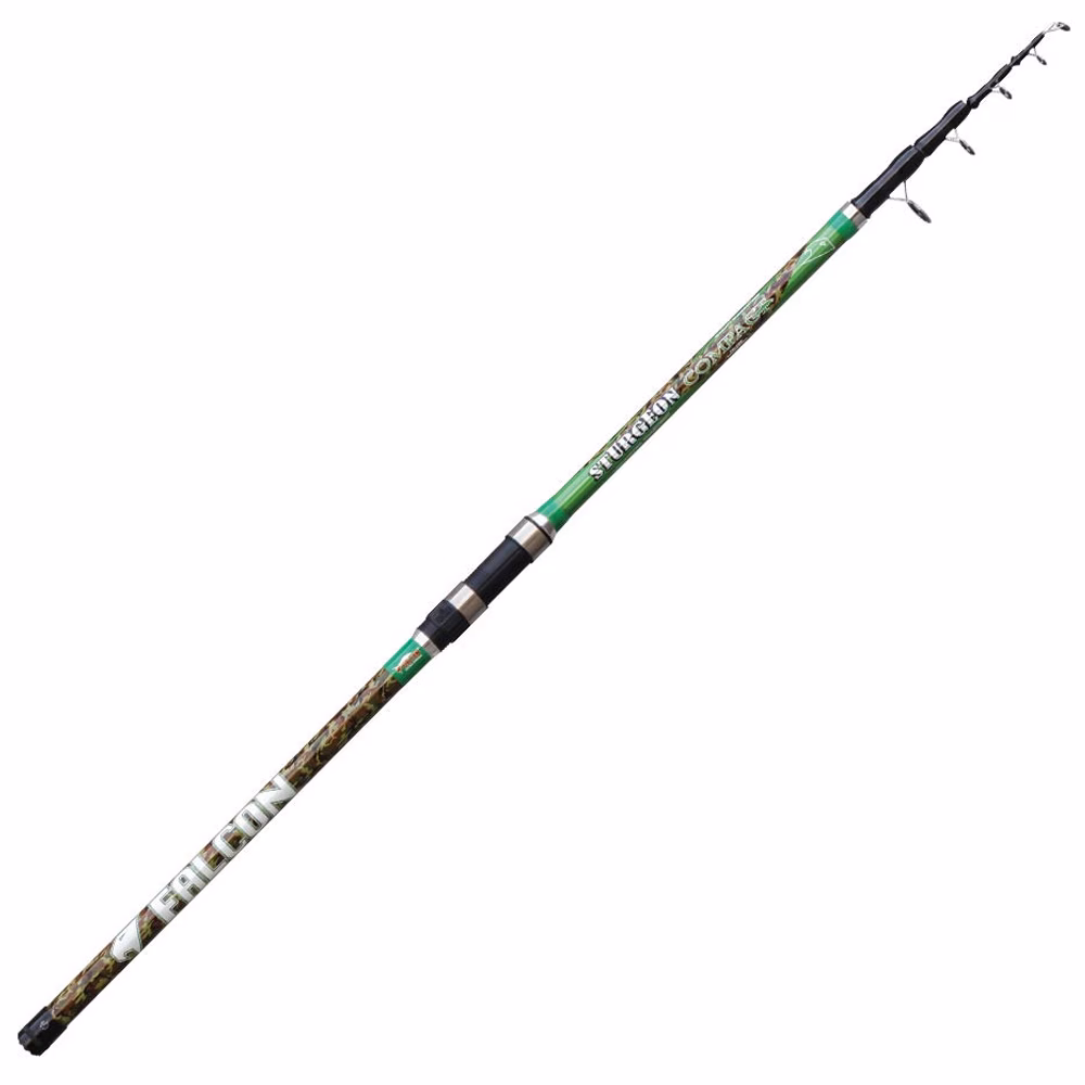 Falcon Sturgeon Compact 420. Eine preiswerte Stör-Angelrute, aber mit sehr guten Eigenschaften und absolut zuverlässig. Eine Störrute mit einem 5-teiligen Teleskopschaft, die sich an diejenigen richtet, die das Störangeln mit modernen Techniken lieben und ein weniger sperriges, aber leistungsstarkes und zuverlässiges Werkzeug wie Teleskopruten mit mehreren Teilen bevorzugen. Die Falcon Sturgeon Compact 420 ist 4,20 m lang und hat eine Wurfkraft von 250 g und eine unendliche Kampfkraft!