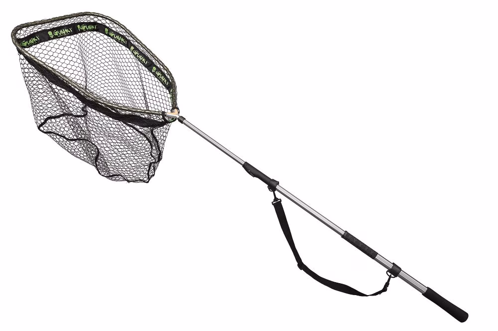 Fast Street GUNKI „Street Fishing Concept“-Kescher, perfekt für den Angler zu Fuß (aber nicht nur!), er ist mit einem stabilen Aluminiumgriff gefertigt. Seine Abmessungen sind sehr klein (60 cm). Zum Tragen ist es mit einem Schultergurt ausgestattet. Die eigentliche Innovation liegt im Griff: Die drei Teile, aus denen er besteht, lassen sich in einem einzigen Vorgang durch ein in den Griff am Zwischenteil integriertes Schiebesystem entfalten. Durch Betätigen dieses Mechanismus durch einfaches Drücken des Griffknopfs und Ziehen des Endabschnitts können Sie alle Abschnitte ausfahren, um eine Gesamtlänge von 1,20 m (ohne Kopf) zu erreichen. Eine einfache Geste, die extrem schnell und einfach durchzuführen ist und Ihnen viel Zeit spart, insbesondere wenn Sie alleine sind! Stabiler Kopf mit Aluminiumrahmen mit 15 mm Durchmesser. Standard-Gewindebefestigung am Griff. PVC-beschichtetes, tiefmaschiges Netz.