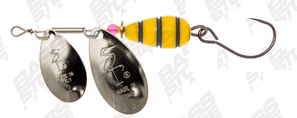 Heron Vespa Tandem Forellen-Spinner mit doppeltem Metallblatt. Diese Einhaken-Forellenköder für Catch-and-Release- und Regulierungsgewässer sind ein italienischer Köderklassiker. Ideal für die Suche nach Exemplaren von Forellen, Barschen und Döbel in verschiedenen Größen. Beim Einholen schwimmen sie gut in der Strömung beim Angeln in Flüssen und Bächen.