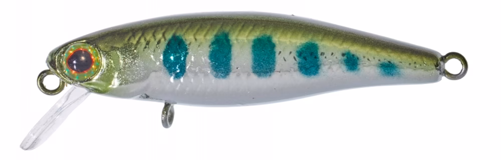 Illex Tiny Fry SP, ein schwebender Bachforellen-Minnow, entworfen von Jackall Bros., gekennzeichnet durch einen kompakten Körper und eine straffe und hektische Bewegung während der Erholungsphase und bissig während des Rucks. Der Illex Tiny Fry SP Minnow ist auch ein Wobbler, der für das leichte Sportfischen aller in Kanälen und Kanälen vorkommenden Raubtiere wie Döbel und Barsch empfohlen wird.