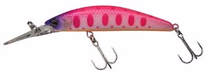 Der JACKALL BROS TIMON TRICOROLL GT 72 DR-F Minnow ist die schwimmende Version der GT 'gravity transfer' Serie. Das Volumen des Körpers dieses Jerkbaits hilft ihm, viel Wasser zu bewegen und Wasserströmungen zu überwinden und bis zu 1,5 Meter zu sinken. Seine flachen Seiten begünstigen das Aufblitzen, so dass die Forellen ihn schon von weitem erkennen können. Die Kontur des TRICOROLL GT 72 DR-F, die Form und Größe des Paddels und seine Neigung ermöglichen es ihm, schnell eine maximale Tiefe zu erreichen. Die Schwimmbewegung der JACKALL BROS TIMON TRICOROLL GT 72 DR-F Elritze besteht aus beuteähnlichen Bewegungen und lockt Forellen an, die sich in ihren Höhlen verstecken.