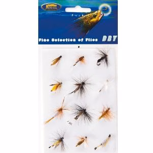 Lineaeffe Fly Fishing Kit mit 12 gebrauchsfertigen "Trockenfliegen". Dieses Set enthält 12 schwimmende künstliche Fliegen. Ideal für das Fliegenfischen auf Forellen und Döbel in Seen und Flüssen.