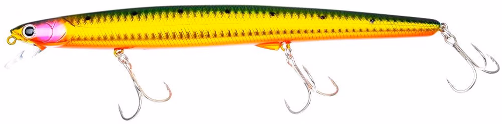 Lucky Craft Flash Minnow Slim 193 SS SEAFINGER. Lucky Craft ha messo a punto un long jerk affondante da mare di livello PREMIUM, dal nuoto perfetto, e dalla lanciabilità fuori dal comune in relazione al peso. Il nuovo Lucky Craft Flash Minnow Slim 193 SS (SLOW SINKING) ha una paletta frontale ed un corpo resistentissimi uniti ad un sistema di pesi a sfera che si muovono su un corridoio centrale, mentre una sfera più piccola, in prossimità della testa provvede ad un perfetto bilanciamento. La peculiarità di questo saltwater slim minnow, che la differenzia rispetto ai long jerk di scarsa qualità è l'affondamento in posizione verticale in caduta libera verso il fondo per raggiungere velocemente la profondità desiderata. L'assetto cambia drasticamente alla prima jerkata, quando si colloca in posizione PARALLELA rispetto al fondale come una vera preda. Questa caratteristica è importante quando si cercano pesci diffidenti, in ambienti dove i long jerk sono molto utilizzati. Altre caratteristiche non comuni di questi long jerk sono sia quella di TENERE L'ONDA sia quella di tenere perfettamente una corsia di nuoto anche con correnti laterali, e per questa ragione, il FLASH MINNOW SLIM 193SS, si sente chiaramente "in canna" durante la sua azione. Dotati di ancorette giapponesi affilate chimicamente saltwater top quality e di split rings con carico di rottura certificato. Le vernici e le colorazioni applicate sono del massimo livello qualitativo. Consigliato per serra, barracuda, leccia, grandi predatori marini in genere. Made in Japan.