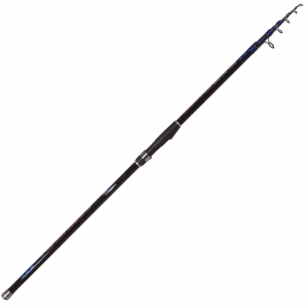 Milo Forza 5 Surfcasting-Rute für mittelschwere bis schwere Würfe in der Brandung. Diese teleskopische Brandungsrute besteht aus hochfestem Carbon, das in gekreuzten Spiralen nach dem sogenannten „X-Winding“-Verfahren umverteilt wird, und hat einen Schaft, der einen kraftvollen Schub beim Wurf ermöglicht. Sie ist präzise und sensibel auch auf mittelgroße Fische wie Brassen, Goldbrassen und Barsche und ist mit SIC II-Doppelstegschlaufen und einem stabilen Schraubrollensitz ausgestattet. Eine ideale Wahl für Liebhaber von Teleskop-Surfcasting-Ruten mit einem ausgezeichneten Preis-Leistungs-Verhältnis.