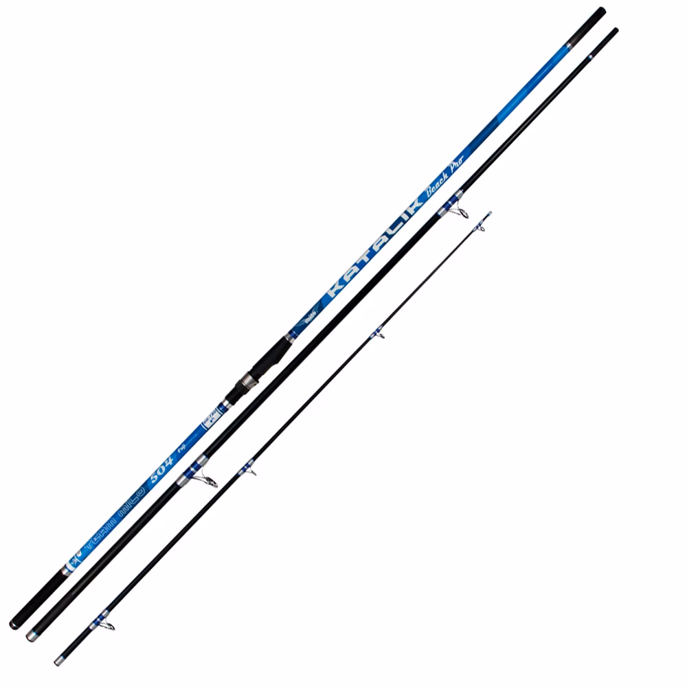 Milo Katalik Beach Pro. Canna da surf casting Milo Katalik Beach Pro, canne Milo da surfcasting in tre pezzi, realizzate in carbonio ad elevata resistenza. Estremamente potente e totalmente affidabile, presenta una spiccata azione di punta progressiva, legature impeccabili, una veste grafica in perfetta inerenza con il mare ed un equipaggiamento TOTAL FUJI costituito dai passanti a doppio ponte in ALCONITE e dal porta mulinello sagomato a vite. Fornita di tre vette in carbonio pieno con estremità colorata per distinguere le tre potenze diverse. Prodotto di alto livello qualitativo, una canna da surfcasting economica in relazione alle grandi performances espresse.