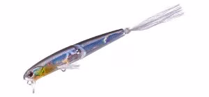 OSP über Real 63 Wake. Der Over Real 63 Wake von OSP ist ein gegliederter Elritze, der aus einem sehr leichten Körper (2,6 Gramm) mit einer Klinge im vorderen Teil und Federn sowohl im hinteren Teil als auch an den Seiten besteht. Seine Wirkung auf der Wasseroberfläche mit einer sehr geschwungenen S-förmigen Bewegung soll einen kleinen flüchtenden Fisch nachahmen. Diese OSP Japan-Köder sind auch an Orten mit hohem Fischereidruck attraktiv für das Barschangeln.