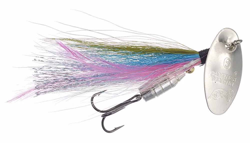 Die neuen Panther Martin® SonicStreamer™ Spinner bieten eine Kombination aus der Aktion eines Streamers und der eines klassischen Spinners. Achtung: Sie sind nicht zu verwechseln mit klassischen Spinnern mit "Dressing" in der Nähe des Hakens. Panther Martin® Sonic Streamers™ sind etwas völlig anderes, sowohl was die Vibration als auch die optische Wirkung im Wasser angeht. Sie sind mit schillernden Haaren und durchgehenden Federn ausgestattet, die es ihnen ermöglichen, im Wasser zu schweben, während sie sinken und wie ein Streamer reagieren. Die Metallblätter drehen sich bei der geringsten Bewegung der Rutenspitze während des Einholens sofort und OHNE DIE GERINGSTE EINWIRKUNG. Die Geschmeidigkeit und Seidigkeit, mit der sie sich durch das Wasser bewegen, sorgen zusammen mit ihren Blitz- und Tonsignalen für einen einzigartigen Lockeffekt für Forellen, Barsche, Rapfen und alles andere, was sich im Wasser bewegt. Sorgfältig konstruiert, so dass die Feder und das Haar auf dem glänzenden Metallkörper montiert sind und der Haken frei bleibt!
