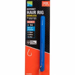 Prestons MCM-B Bajonett-Haarvorfach ohne Widerhaken sind fertige Vorfächer, die aus Materialien höchster Qualität hergestellt und an strenge Spezifikationen gebunden sind, um Vorfächer zu schaffen, die für alle Angler geeignet sind. Der Rig Stick-Queue, der die gebrauchsfertigen Vorfächer enthält, verfügt außerdem über eine Nachfüllfunktion für die Mag Store System-Boxen. Nehmen Sie also einfach den Queue heraus und stecken Sie ihn in den Vorfachhalter.