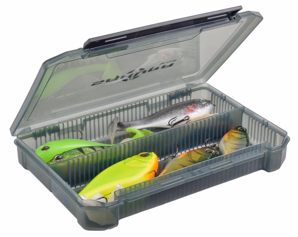 La scatola da pesca Sakura SK-9338 combina robustezza e funzionalità grazie ai suoi scomparti modulabili. Progettata e realizzata da Meiho, uno dei principali attori dell'industria della plastica in Giappone e rinomato per la produzione di scatole da pesca di alta gamma, questa scatola dà prova di un know-how eccezionale. Con dimensioni pratiche di 27,5 cm di lunghezza, 18,7 cm di larghezza e 4,3 cm di profondità, la SK-9338 è allo stesso tempo compatta e spaziosa, ideale per organizzare esche e accessori da pesca. Il colore trasparente di colore grigio fumé permette di visualizzare rapidamente il contenuto senza dover aprire la scatola. All'interno troverete un divisorio centrale orizzontale fisso e due divisori rimovibili disposti lungo tutta la lunghezza che facilitano ulteriormente l'organizzazione. Inoltre, è dotata di 16 piccoli divisori in plastica rimovibili che potete spostare in base alle vostre esigenze, offrendo così una flessibilità ineguagliabile nell'organizzare esche rigide, morbide e accessori da pesca. Uno dei punti di forza di questa scatola è la sua robusta chiusura inversa, che garantisce una chiusura sicura e previene ogni apertura accidentale durante il trasporto. Grazie alla sua struttura, la scatola da pesca SK-9338 è in grado di contenere esche lunghe fino a 25,5 cm e alte 7,5 cm, rendendola perfettamente adatta per una grande varietà di esche per l'acqua dolce o il mare.