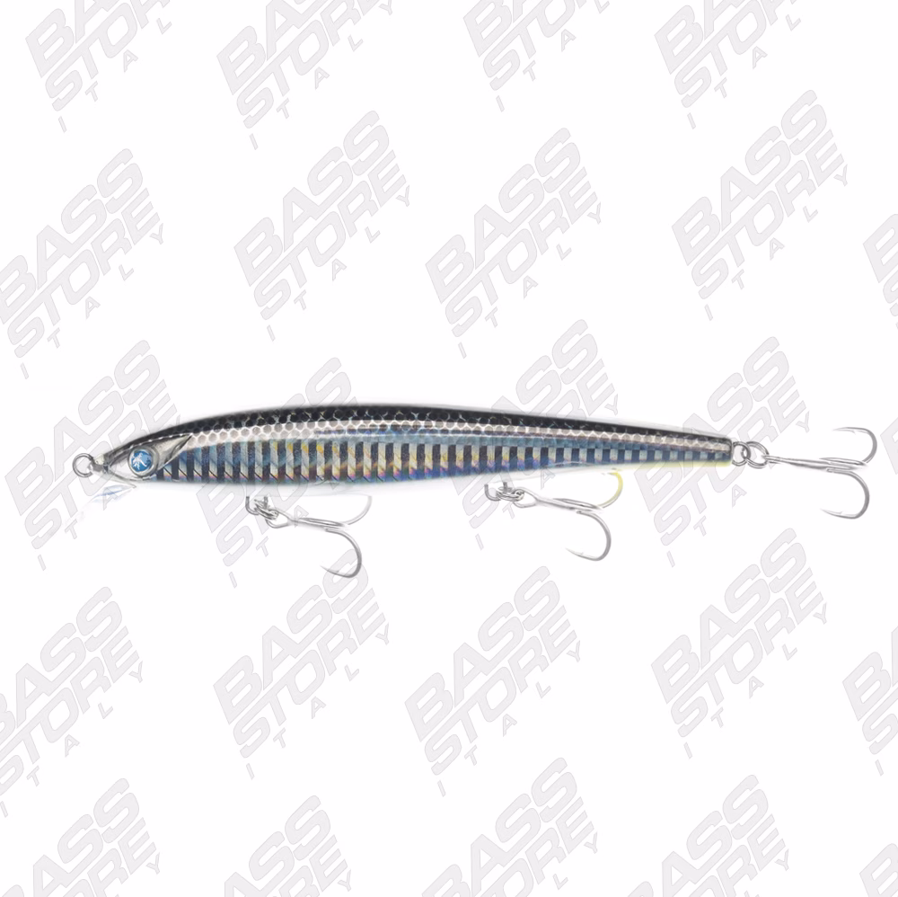 Seaspin Eja 130 Bullet . Saltwater minnow che ha un movimento in acqua caratteristico, vigoroso e dinamico ma al tempo stesso piacevolmente fluido. Molto efficace anche solo sul recupero attivo lineare, nuota perfettamente con forti correnti laterali. E’ dotato di armatura passante. Jerk da mare irresistibile se animato con ritmiche jerkate, soprattutto nelle fasi di stop and go. Si può recuperare in un ampio ventaglio di velocità ed è utilizzabile perfettamente anche a traina. Ti permette di stare in pesca senza sforzo anche quando:
