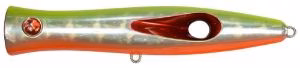 Der TOTO 113 ist 113 mm lang und ein Popper, der vor allem für mittelgroße Fische wie Wolfsbarsch, Goldmakrele, Barrakuda, Bernsteinmakrele, Lecce und Bluefish geeignet ist. Mit seinem Gewicht von 23 g fällt es perfekt in die klassische „Komfortzone“ der allermeisten Mittelmeerfischer. Es hat grundsätzlich die gleiche Form wie das größere Modell und zeichnet sich außerdem durch das Querloch im hinteren Teil des Körpers und durch die beiden asymmetrischen seitlichen Ausbuchtungen aus, die dazu dienen, eine größere Wassermenge zu den rundum vorhandenen gekrümmten Flächen zu leiten das Loch . Der auf diese Weise erzeugte zusätzliche Druck im hinteren Teil des Modells verbindet sich mit dem normalen Wasserdruck, der beim Schwimmen im vorderen Teil aller Poppers herrscht, und erzeugt ein stärkeres Wackeln des künstlichen Schwanzes, einer Röhre mit deutlich höheren Blasen Bestehend aus herkömmlichen Poppern, einer Hinterradbremse, die den Köder verlangsamt, wenn der Fischer mit dem Einholen aufhört, und im Allgemeinen eine bessere Kontrolle über den Köder ermöglicht.
