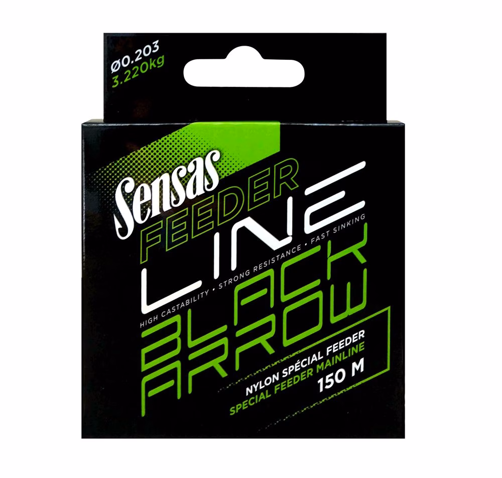 BLACK ARROW FEEDER NYLON 150M SENSAS, hochwertiger Nylonfaden, entwickelt für Pêche au Feeder, schwarze Farbe, flexible Elastizität und unglaubliche Widerstandsfähigkeit. Sie können es werfen, ohne dass es zerbricht, wenn es kommt. Dieser ist mit einem speziellen Dressing ausgestattet, das das Angeln am Futterkorb erleichtert.