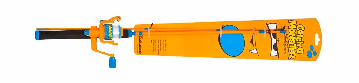 Die Shakespeare Catch a Monster Spin Combo ist eine zweiteilige Angelrute, die speziell für Jungen und Mädchen konzipiert wurde. Es ist ein komplettes gebrauchsfertiges Set, da es mit einer Spinnrolle ausgestattet ist, die bereits mit Nylonschnur bespult ist. Dank ihres einfachen und lustigen Designs ist sie eine nette Geschenkidee für Geburtstage, Weihnachten und verschiedene Anlässe, ideal, um die Kleinsten in die Welt des Angelns einzuführen.