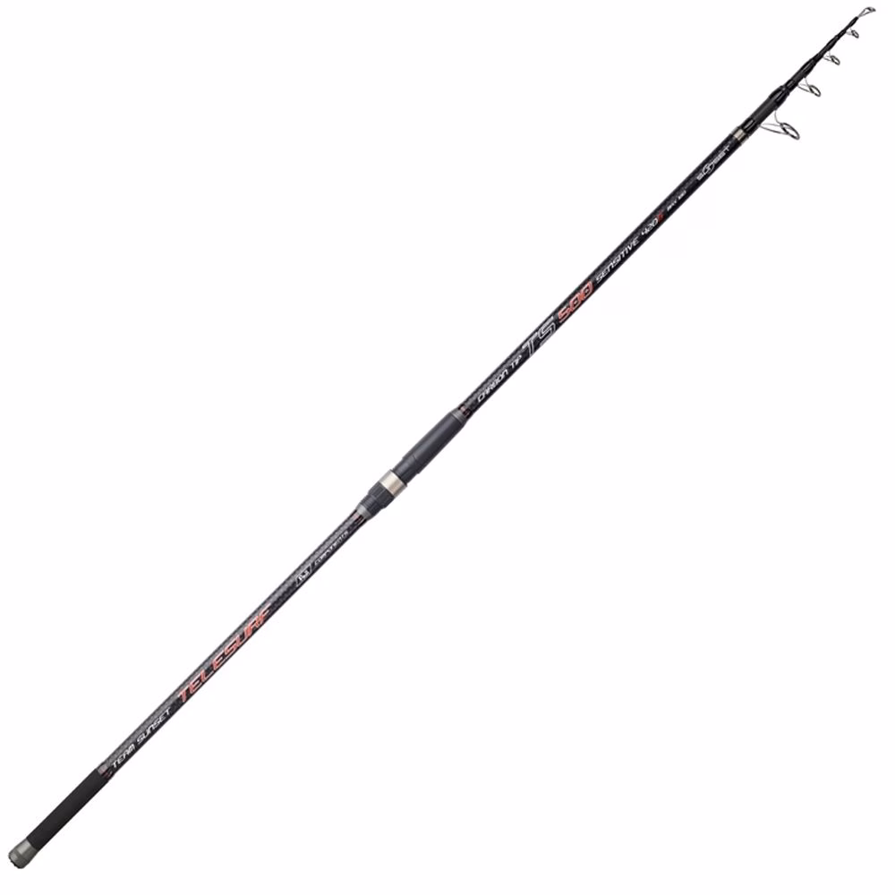 Die SUNSET TELESURF TS 500 Surfcasting-Ruten verfügen über einen teleskopischen 24T "Technifibre"-Carbonblank, einen Aluminiumknauf, einen rutschfesten "Soft-Touch"-Griff, einen ergonomischen Röhrenrollenhalter, FUJI MNOG-gebundene Ringe, eine kurze Carbonspitze und ein Stoffetui. Der schlanke und leichte Rutenblank der SUNSET TELESURF TS 500 eignet sich ideal für das leichte Brandungsangeln vom Strand oder vom Ufer aus und für das Aufspüren der subtilen Bisse von Barschen wie Dorade oder Marmorbrasse! Die schnelle Aktion ermöglicht es, aus sicherer Entfernung zu werfen. Die Fuji-Ringe sorgen außerdem für ein perfektes Gleiten, um auch die entferntesten Stellen zu erreichen! Die lackierte Spitze gibt Ihnen eine klare Sicht auf die Bisse, Tag und Nacht!
