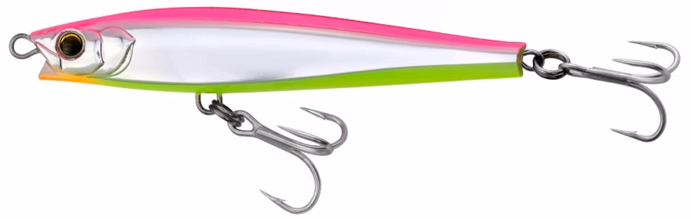 Der Yo-Zuri Hydro Monster Shot ist der vielseitigste lippenlose Stickbait auf dem Markt. Dieser lippenlose Köder in Salzwasserqualität von Yo-Zuri kann von der Oberfläche bis zum Grund verwendet werden. Er ist ein schwer beschwerter, lippenloser Stickbait, der in einer horizontalen Position fällt, mit einem seitlichen Schwung, der perfekt einen sterbenden Köderfisch widerspiegelt. Beim geraden Einholen hat er eine weit schwingende Aktion, beim Jiggen oder Twitchen hat er eine lebhafte Aktion und beim schnellen Einholen an der Oberfläche hat er eine springende Aktion, die einem flüchtenden Köderfisch ähnelt. Die Konstruktion ist aus durchgefärbtem Stahl, der Körper ist mit Blei gefüllt und die Haken sind dreifach verstärkt für Salzwasser. Er ist in verschiedenen Modellen erhältlich, die jeden Einsatzbereich abdecken, ob vom Ufer oder vom Boot aus, von der Makrele bis zum Offshore-Gelbflossenthunfisch. Sie hat das nötige Gewicht, um weite Würfe auf die entferntesten Fische zu machen.