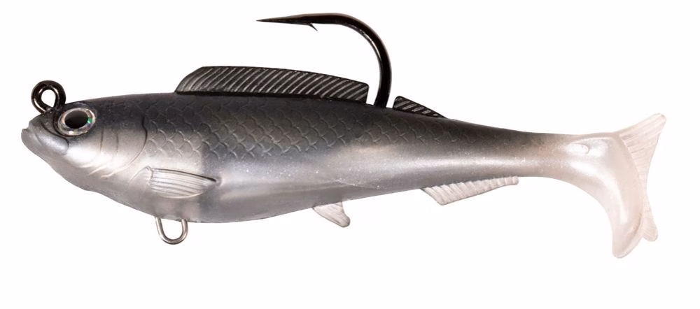 Z-Man Herculez Swimbait. Z-Man Herculez Swimbait 4" ist ein sehr realistischer und vielseitiger, vollmundiger, vormontierter weicher Swimbait mit einem sehr natürlichen Aussehen und Schwimmverhalten, der sich zum Angeln in Süß- und Salzwasser eignet. Z-Man Herculez Swimbait 4" ist ebenfalls erhältlich in der Variante mit einer Größe von 5" (12,70 cm) und einem Gewicht von 5/8 oz (17,7 g) mit einem Haken der Größe 7/0. Ausgestattet mit anatomisch realistischen Flossen und einem Profil, das jeden Futterfisch imitieren soll, ist der weiche und vollmundige Pre- Zusammengebauter Swimbait Der Z-Man Herculez Swimbait 4" hat dank seines einzigartigen gebogenen Paddelschwanzdesigns eine unglaublich realistische Schwimmaktion. Das Profil des Z-Man Herculez Swimbait 4" Pre-assembled Swimbait verfügt über ultradetaillierte 3D-Augen, Flossen, einen gebogenen Paddelschwanz, Kiemen und Anatomie, jeweils handbemalt mit Farben, die so gestaltet sind, dass sie die potenzielle natürliche Beute der bedrohten Fische bestmöglich wiedergeben . Z-Man Herculez Swimbait 4" besteht wie jeder Z-Man-Köder aus 10X Tough ElaZtech, einer innovativen Polymermischung, die unglaublich weich ist und die höchste Elastizität auf dem Markt sowie besondere Zug- und Schnittfestigkeit aufweist. Der Z-Man Herculez Swimbait 4" Pre-Rigged Swimbait verfügt über einen robusten Mustad® UltraPoint®-Haken der Größe 5/0, der um ein 10,5 g (3/8 oz) schweres Zinkgewicht geformt ist, um eine perfekte Sinkgeschwindigkeit zu gewährleisten. Darüber hinaus enthält er auch einen Ventrale Öse zum Anbringen eines Hilfshakens im unteren Teil des Schwimmköders. Seine natürliche und realistische Beschaffenheit macht ihn zu einem idealen Köder für den Fang aller mittelgroßen und großen Raubtiere wie Schwarzbarsch, Zander, Hecht und kleine Welsgrößen sowie Salzwasser Raubtiere.