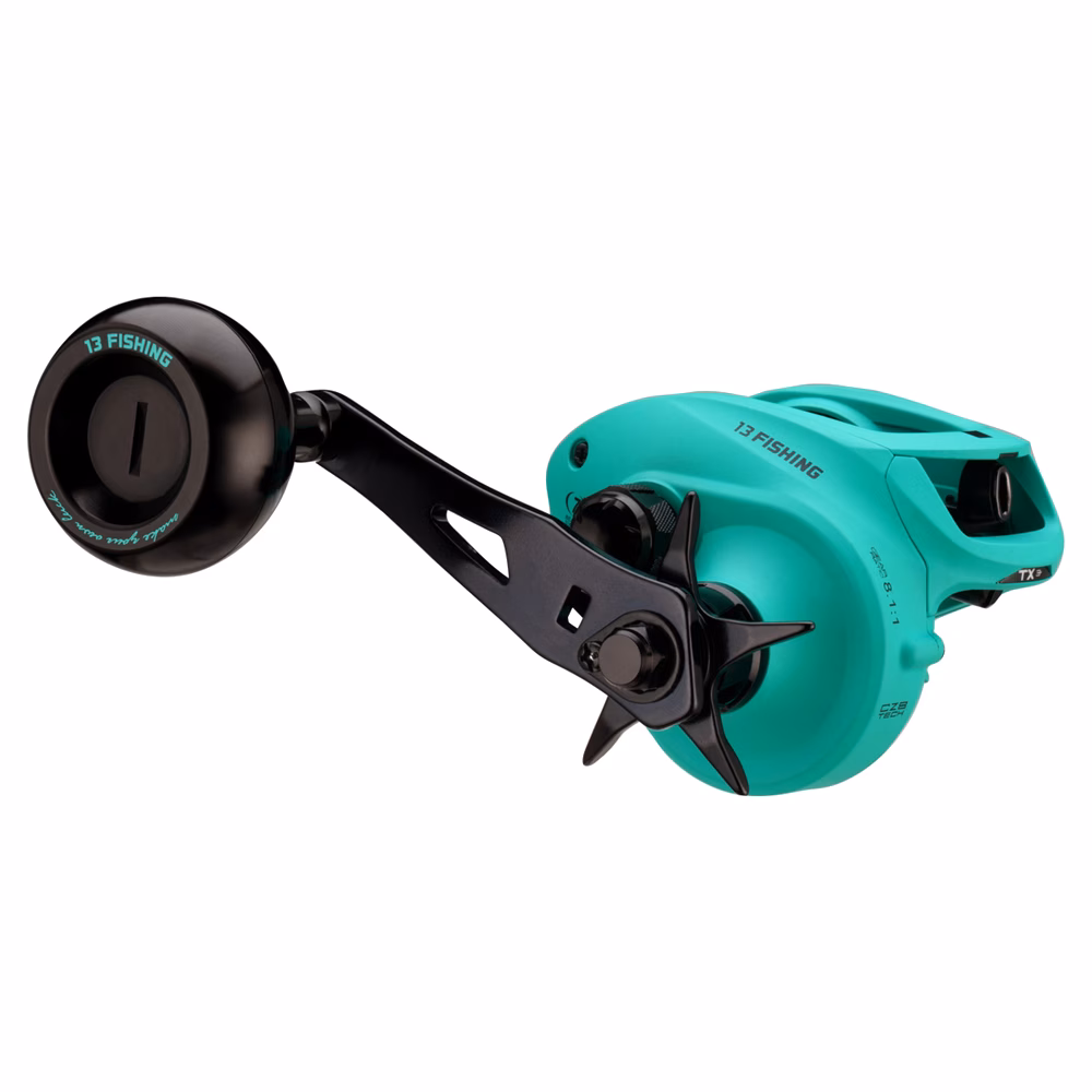 13 Fishing Concept TX3 Casting. The brand new Concept TX3 casting reel from 13 Fishing is designed for fishing in the harshest and most extreme environments you can think of, both in freshwater and especially in saltwater. Its new ZERO corrosion carbon cast iron frame houses the BOSS HAM (Hardened Brass Precision Cut main gear) Hardened brass precision cut main gear. Corrosion-resistant Black Seal Hyper ball bearings paired with CZB Comp high-speed Zero Corrosion spool bearings provide optimal performance and longevity. The all new Advanced Polymer Drag will stand up to the use and abuse that any angler can apply thanks to its drag up to 18kg. The new standard in saltwater fishing casting reels has arrived and with the new integrated drag buzzer system letting you know that the battle is on! The characteristics of the 13 Fishing Concept TX3 also make it excellent for use in fresh water for pike and catfish fishing. Equipped with 2 left hand cranks, 1 with double cork knob and one with single knob for use at sea and trolling.