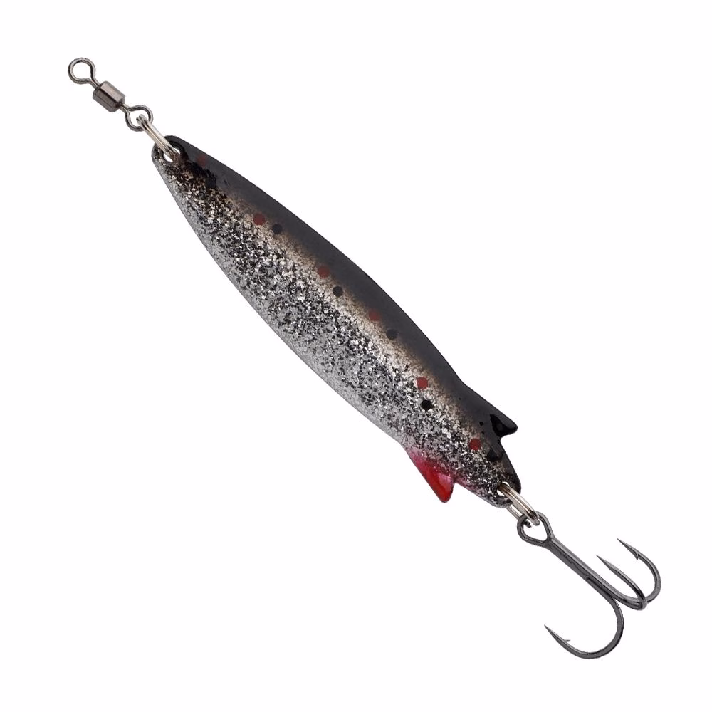 The Abu Garcia Toby Spoon is a famous Swedish wobbler spoon, launched in the 1950s and remaining in production with an almost unchanged design. It is an extremely versatile wobbler for trout, perch, zander, asp, pike, salmon, and marine predators such as sea bass and sea trout, effective in both casting and even trolling. Its success derives from the sinuous 'S' profile and the lateral stabilizing fins that irresistibly replicate the swimming action of a baitfish. It is the most famous Abu Garcia spoon in the world for its reliability and versatility.