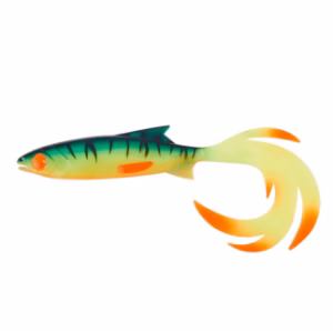 Balzer Shirasu Reptile Shad, large flat grub hybrid with shad, with segmented sickle tail. The tail generates incredible turbulences and the body oscillates on itself. Excellent choice for catfish spinning and for fishing large pike, rigged with jighead or swimbait hook, or assist. Fantastic UV colors and durable rubber complement these chunky sickles in the best way! Products in different sizes!