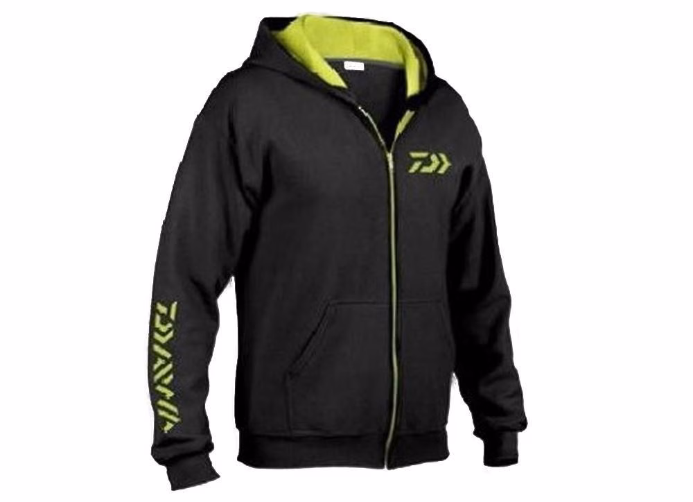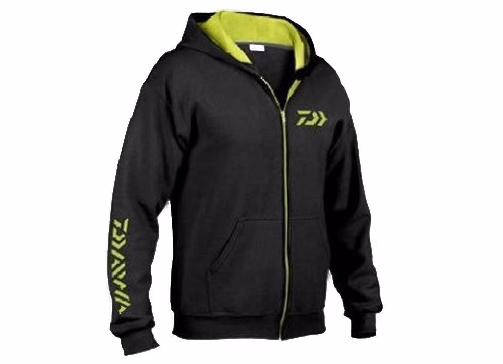Daiwa Crew fishing sweatshirt with hood and front zip. Original Team Daiwa product also for free time and everyday life, it belongs to the Daiwa Crew clothing line. Daiwa logo in anthracite / fluorescent green.