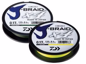 Daiwa J-Braid X4. New braided line from Daiwa, son of the J-Braid X8 project, the new 4-strand J Braid The objective of developing this 4-strand braided line is to make anglers appreciate the fishing advantages of braided line with the same economic investment as a good monofilament.