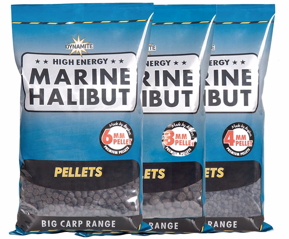 Dynamite Marine Halibut Pellets. Dynamite has always been the breed name for halibut pellets. We believe that our halibut pellets have the highest fish meal and fish oil content available on the market. They are now available in resealable bags! With a protein content of 42% and rich in amino acids, they are truly a superior pellet in every respect. The pellets are available in sizes from 3 mm to 21 mm. They are all rich in fish-attracting oils and pre-digested Super G fish meal, making them palatable for a wide range of species. Carp fishermen prefer these pellets for their immense attraction power and they are also unbeatable for barbel, chub and bream in rivers. The 900 g bags of non-punched pellets are available in 3, 4, 6 and 8 mm sizes.