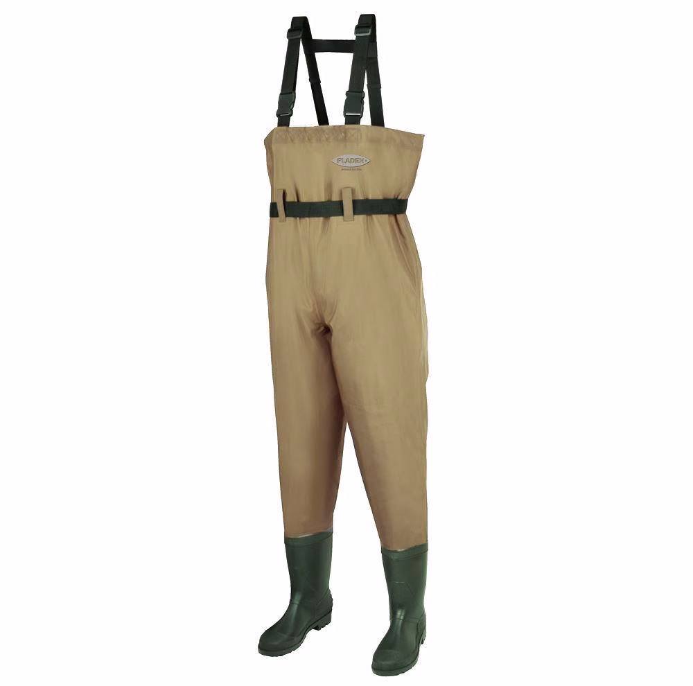 Fladen 3-layer Breathable Chest Waders for fishing in triple layer breathable material, boot with non-slip sole, adjustable belt and braces. Welded seams for maximum waterproofness and durability.