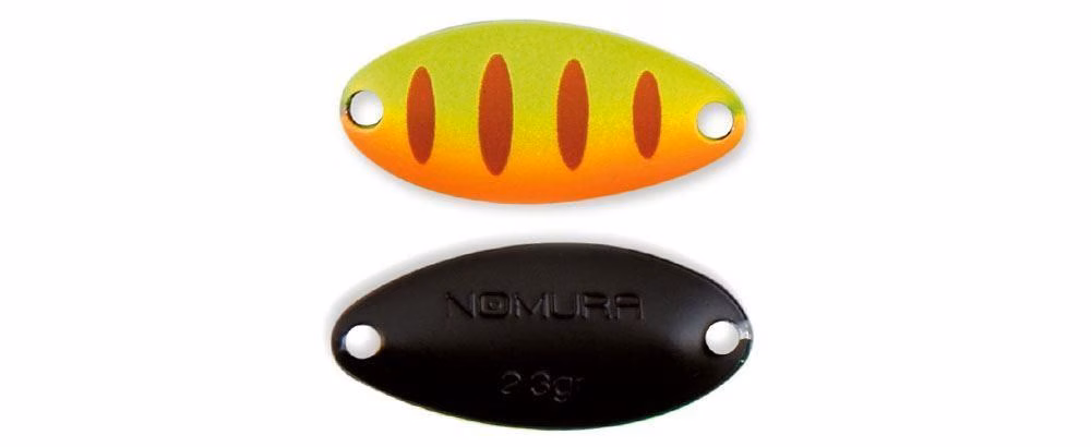 Nomura Isei Sue spoon . Nomura Undulating Trout Area Game. Enticing colors and movement for spinning trout fishing in a pond. Obviously these Nomura trout area reels are equipped with single barbless hooks. Medium sinking