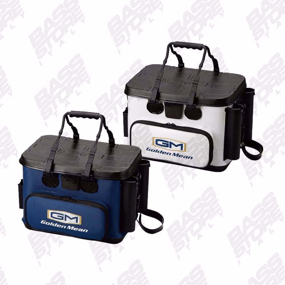 La Original Bakkan Bag della Golden Mean è una borsa impermebabile da pesca in EVA rigido incluso il coperchio. Lateralmente presenta 2 porta canne e un pratico porta pinza, mentre nella parte frontale un'ampia tasca. Molto comoda da trasportare tramite il manico che può essere unito molto facilmente, sia tramite la fascia monospalla.