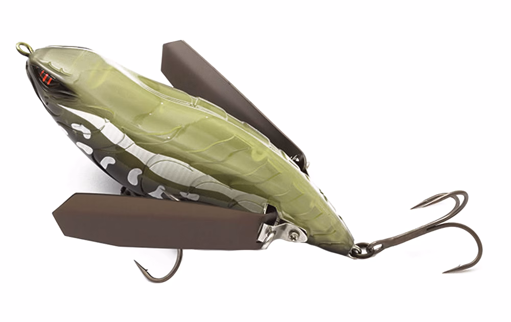 Instantly grabbing water with the slightest turn of the reel handle, the oversized wings pierce the water like an anchor to suppress its forward movement and achieve its one-of-a-kind waddling action. When using a medium or high speed retrieve the Aventa RSR changes posture by thrusting its head underwater to prevent it from breaking the crawl or jumping out of the water. Fitted with premium split rings and sticky sharp treble hooks, the Aventa Crawler RSR Walking Bait is made to handle heart-stopping blowups from aggressive bass looking for a substantial meal.