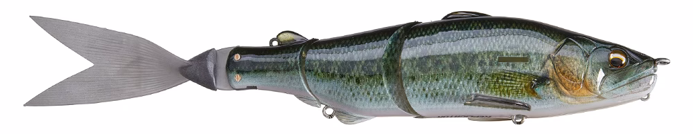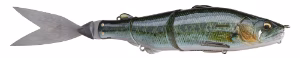 Imakatsu Replicator 3D Realism swimbait. It is the most basic setting of the replicator and the most combative form in normal use. This Imakatsu lure features a soft S-shaped action created by multiple joints, a voluntary action that keeps moving subtly even when stationary, and a slide dirt performance with a jerk to the left and right. The most notable feature is the joint structure that allows you to decide the left and right dirt directions from the stationary state as desired, even though it is a multi-joint big bait in which the direction of the slide dirt is extremely difficult to determine. The triple hook equipment and flat tail specification replicator is a big bait that has both the advantages of multi-joint big bait and single joint big bait (the replicator is set to dead throw floating in this basic setting state). Therefore, adjust the buoyancy with the plate weight.)