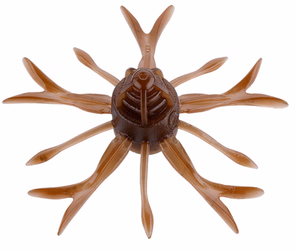 Jackall Bros King Jimmy Henge. During the fall of the lure, its large and small appendages move spontaneously. The complex vibrations generated by their movement cause black-bass bites. The downshot proved particularly effective during testing. A leader length of about 2 cm is recommended, just enough to prevent the sinker from interfering with the bait. For the first time in the JACKALL line, a salt-infused elastomer material has been adopted. This carefully balanced weight distribution improves the bait engagement. The lure's popper-like profile generates one of the strongest water-pushing actions in its class, clinging strongly to the water. It also helps reduce the travel distance of the lure, keeping it in the strike zone longer. Inside the front front of the Jackall Bros King Jimmy Henge is the part where to insert the hook. This allows the hook insertion area to be minimized when using the "chongake" (hooking on the "nose" of the bait)