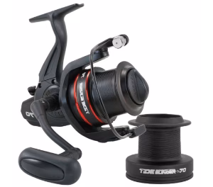 Featuring 4+1 shielded ball bearings and a One Way Clutch system, it offers a powerful and smooth retrieval. The Oversized Bail Arm and CNC metal handle provide the strength needed for tough fights. This mulinello comes complete with two spools (one light aluminum and one graphite), allowing you to switch lines easily during your fishing session.