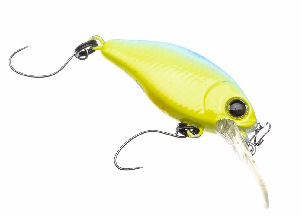 Lucky Craft Flat Cra-Pea MR: in Japan this completely "flat" trout area game crank is considered the research pond fishing bait par excellence. The body with a flattened side profile allows for narrow swimming with multiple flashes due to the sharp edges that are created. Impeccable action with every type of recovery, making it an excellent all-rounder in the most disparate conditions. Classic colors of trout area game crankbaits, but there are some unusual color solutions in the color chart (glow, matte, holo finish colours). With single Vanfook barbless hooks . It is an exceptional crankbait for search fishing from 50 cm to 1 meter below the surface. Made in Japan