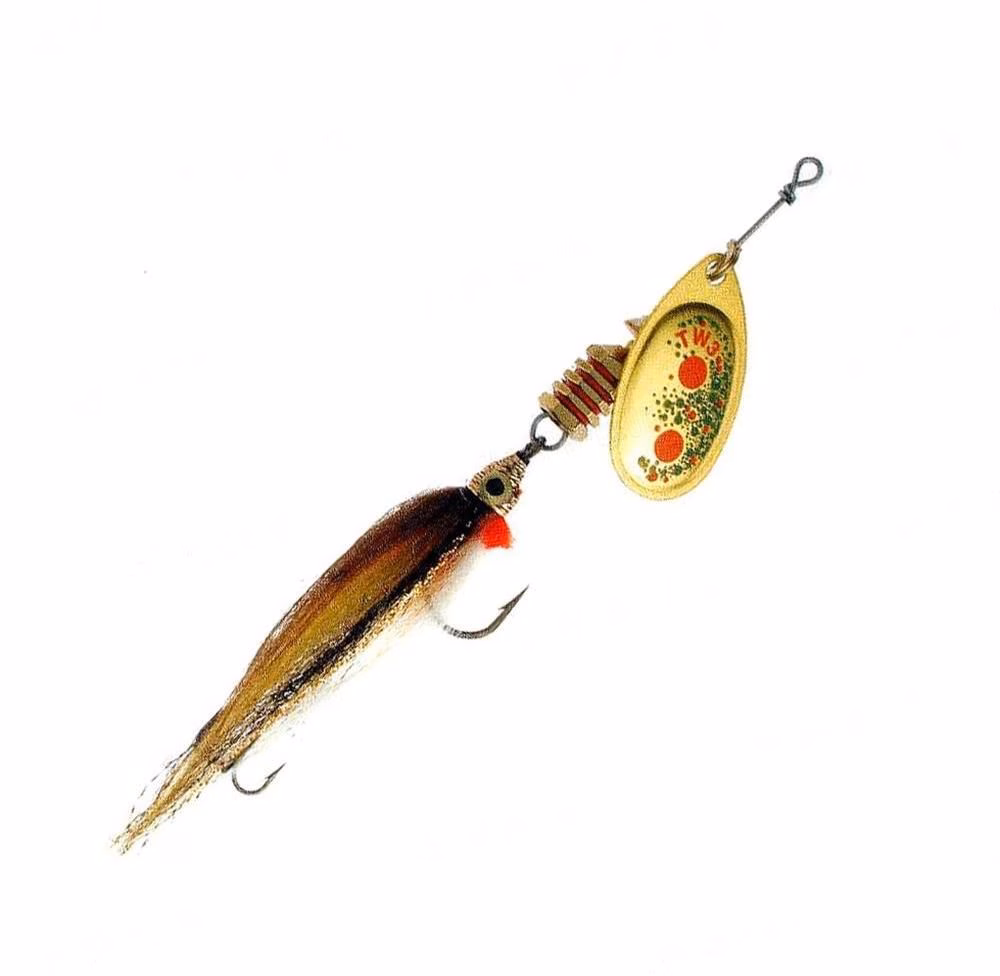 Mepps Aglia TW Streamer: esca ibrida per trout game e light game in genere (trota, cavedano, persico reale) che racchiude le potenzialità di un cucchiaino rotante (spinner) e le potenzialità di uno streamer. Made in France.