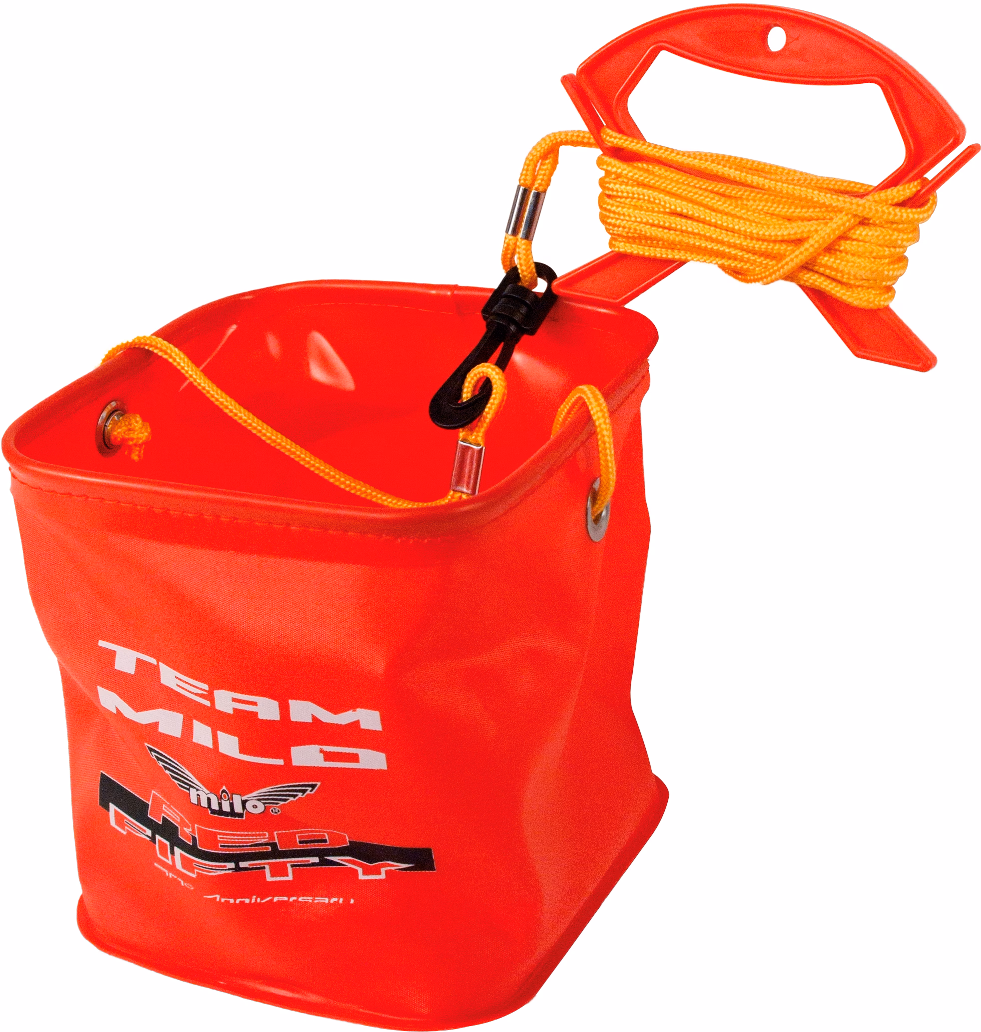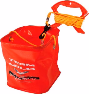Milo Eva Bucket with Rope. Waterproof bucket with rope Milo, practical and compact, this flexible bucket is very handy especially when it comes to retrieving water to wet groundbaits and pellets from a steep bank.