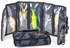 Molix Roll Up Lure Bag. A practical and functional lure holder with 6 large pockets that can be closed with Velcro, for quick storage and safe transport of lures. This is an excellent collector for “big baits”, as an alternative to the classic plastic swimbait-boxes. It has an upper plastic-coated net compartment for small parts, a quick release closure and a carry handle. The side loop also allows it to be attached to a belt or bag.