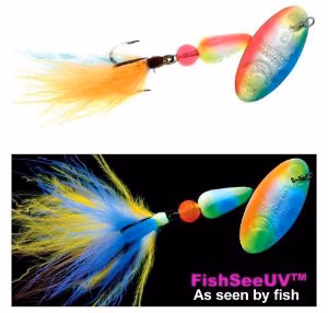 Panther Martin FishSeeUV™ Fish don't see like we humans do, and they can see UV rays. Martin therefore decided to create rotating spoons with a base of a particular UV pearl paint and unconventional color schemes applied digitally. The visual effect in the water is incredible, but you can't see it yourself. ONLY FISH CAN SEE IT. Unlike any other rotating spoon. Ideal for spinning fishing for trout, chub, perch, asp and any predatory fish.