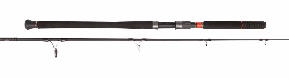Penn Conflict Offshore, spinning rods with offset handle for sea, for snapper, amberjack, grouper, tuna. The Penn Conflict Offshore rods are equipped with a 24-30T graphite blank with X-Wrap technology, Fuji Slim O-Ring Deep Pressed Concept Frame guides with stainless steel frame treated with CC (Corrosion Control) technology, Fuji reel seat in polished stainless steel and high density EVA handle. Equipped with rubber butt cap for use with the combat belt.