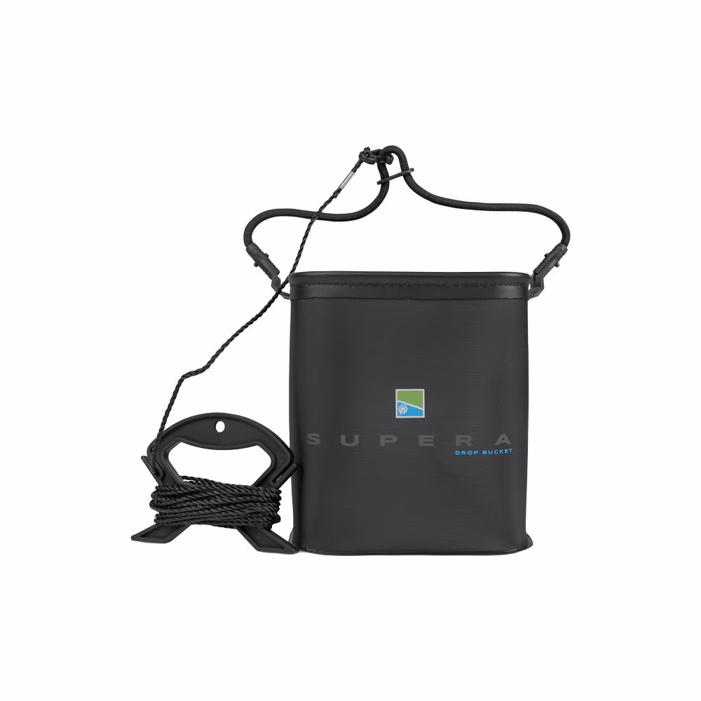 Preston Innovations Supera Drop Bucket is a covered bucket for competitive fishing with match poles and feeders, supplied with a long safety cord. Very useful bucket in all fishing places with high banks. Essential for stocking up on water to wet the pellets or groundbaits and methods, or catches before taking a souvenir photo. Supplied with long safety cord.