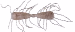 Raid Japan Big 2Way. Small 'soft-worm' designed for sight fishing and 'finesse' fishing. Its characteristic shape with a symmetrical profile on the sides and a ball-shaped central body where the hook (wacky rig) is to be attached. The fine plastic barbs amplify delicate vibrations even with very little weight. Excellent in the fall, it swings at every most imperceptible lure. The Raid Big 2Way is characterised by slow and natural sinking, and can also be used in Dropshot and Nose Head.