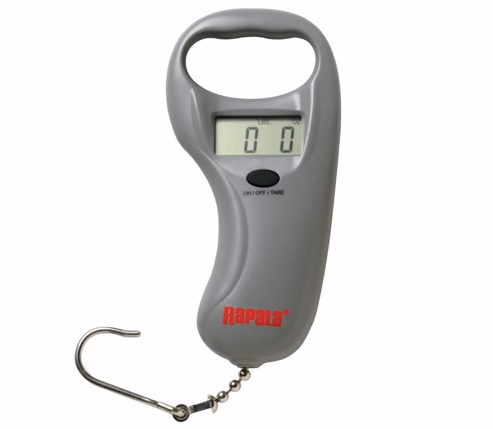 This amazing Rapala fishing scale is incredibly accurate, waterproof. Enabled to transmit weight in kg and pounds with an approximate precision of only 15 g!! It has a maximum hold of 50 lbs.