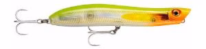 Rapala Max Rap Walk'n Roll. The Rapala MaxRap Walk'N Roll by Rapala is a new hybrid bait halfway between a stickbait and a wtd, it slides on the surface in all conditions activating an irresistible action. Developed in collaboration with professional fishermen who fish in the Atlantic, these Rapala artificial lures are designed for maximum casting distance and maximum stability in bad weather and rough seas. With a steady retrieve, the MaxRap Walk'N Roll darts from side to side, flick it quickly to imitate a fleeing baitfish, or when at rest with the tip of its tail down, push it into place for a head-on motion below. Equipped with VMC 7554 2X-Strong Ti-coated treble hooks. High impact ABS body construction, long action internal weight system.
