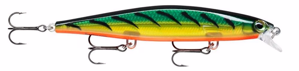 New Jerk Rapala Shadow Rap . This Rapala jerkbait for sea and inland waters has a swimming range of 180° and a subsequent heeling due to inertia. Equipped with VMC treble hooks. The most attractive retrieves of the Rapala Shadow Rap minnow turned out to be the mixed ones, with alternating series of jerks, pauses and linear recoveries. The Shadow Rap is recommended for fishing for black bass, trout, asp, perch, pike, sea bass, barracuda and bluefish. Among the waves or in the currents of rivers, even simple slow linear retrieves yield a lot, as do frenetic retrieves in the warm period for fast predators. Slow floating in fresh and brackish water, suspending in saltwater. The Shadow Rap is produced in two versions: 7 cm (Shadow Rap 07) and 11 cm (Shadow Rap 11)