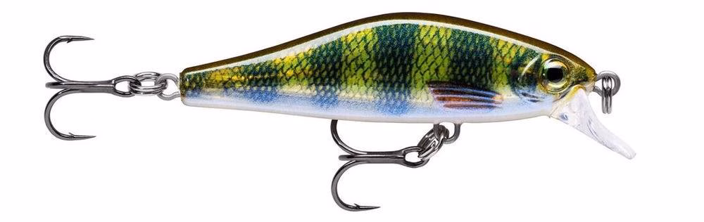 Rapala Shadow Rap Solid Shad minnow. The Shadow Rap Solid Shad is aerodynamic in design and balanced for long and accurate casts even in the most demanding conditions. Built heavy to sink fast, the Shadow Rap Solid Shad jerkbait reaches the targeted depth quickly and stays in the strike zone on the retrieve. Its hard-kicking swimming action gives a lot of side flash and tracks true even in heavy current and on fast retrieves. The color range consists of natural and attractor pattern Shadow Rap finishes with internal flash foils.