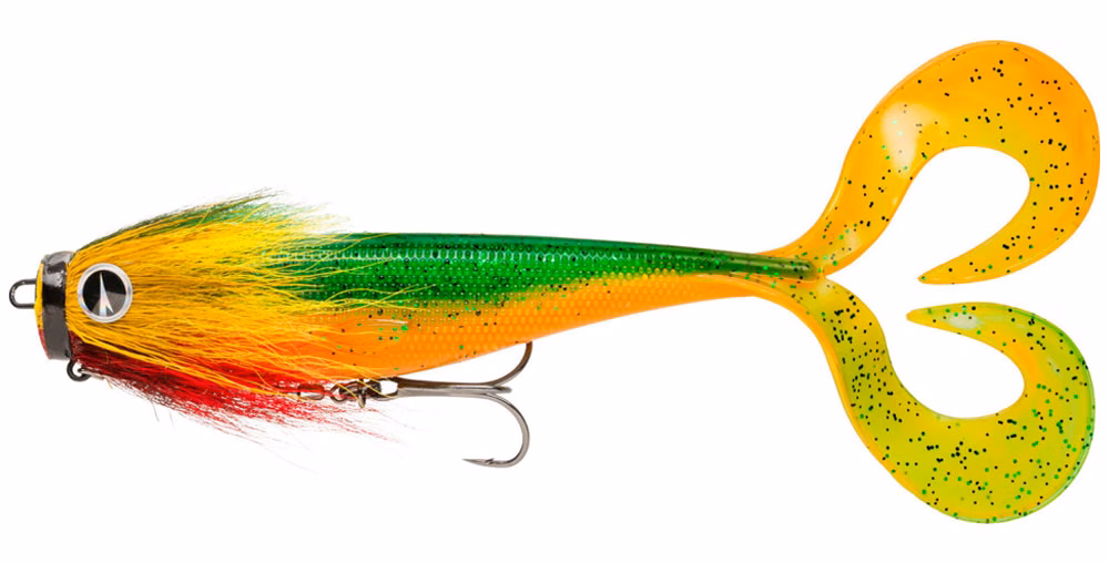 Fluttering Curled Tails: The two curled tails of the Soft Olio shad flutter enticingly, simulating a distressed baitfish.